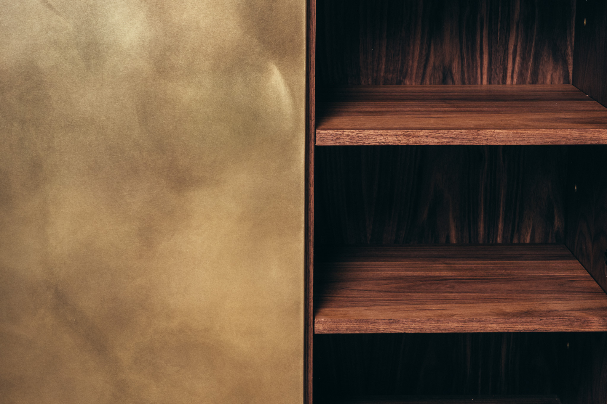 Light Brass Exterior and Natural Walnut Veneer Interior